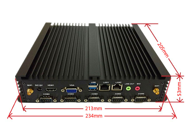 ●EIPC6000-2L-6USB:DC电源;1*HDMI;1*VGA;2*USB3.0;4*USB2.0;2*LAN;1*AUDIO;6*COM